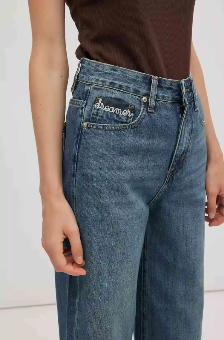 Jeans DREAMER mit weitem Bein und Stickerei